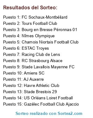 Lista de participantes: AJ Auxerre, Amiens SC, Athlétic Club Ajaccio, Bourg en Bresse Péronnas 01, Chamois Niortais Football Club, Clermont Foot 63, ESTAC Troyes, FC Sochaux-Montbéliard, Gazélec Football Club Ajaccio, Havre Athletic Club, Nîmes Olympique, Racing Club de Lens, RC Strasbourg Alsace, Red Star FC, Stade Brestois 29, Stade de Reims, Stade Lavallois Mayenne FC, Tours Football Club, US Orléans Loiret Football, Valenciennes FC.