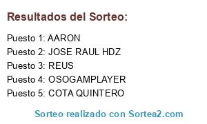 Lista de participantes: AARON, JOSE RAUL HDZ, COTA QUINTERO, REUS, OSOGAMPLAYER.