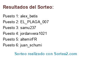 Lista de participantes: samu237, alex_betis, EL_PLAGA_007, jordanvera1021, altemirFR, juan_schumi.