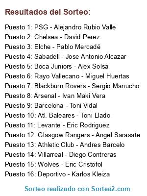 Lista de participantes: Levante - Eric Rodriguez, Wolves - Eric Cristofol, Deportivo - Karlos Kleiza, Boca Juniors - Alex Solsa, Arsenal - Ivan Maki Vera, Barcelona - Toni Vidal, Chelsea - David Perez, Glasgow Rangers - Angel Sarasate, Blackburn Rovers - Sergio Manucho, Sabadell - Jose Antonio Alcazar, Athletic Club - Andres Barcelo, PSG - Alejandro Rubio Valle, Rayo Vallecano - Miguel Huertas, Atl. Baleares - Toni Llado, Elche - Pablo Mercadé, Villarreal - Diego Contreras.