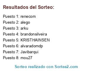 Lista de participantes: arku, renecom, mou27, KRISTHAINSEN, Javibarqui, alego, brandonsilveira, alvaradomdp.