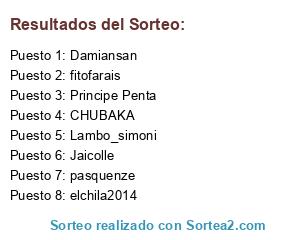 Lista de participantes: elchila2014, pasquenze, fitofarais, Principe Penta, Lambo_simoni, Damiansan, Jaicolle, CHUBAKA.