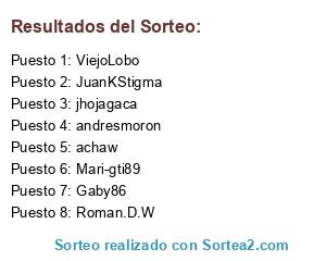 Lista de participantes: andresmoron, JuanKStigma, Gaby86, ViejoLobo, achaw, jhojagaca, Roman.D.W, Mari-gti89.