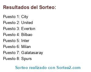 Lista de participantes: United, Galatasaray, Everton, City, Bilbao, Milan, Spurs, Inter.