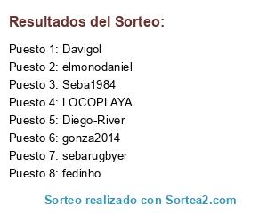 Lista de participantes: LOCOPLAYA, gonza2014, fedinho, sebarugbyer, elmonodaniel, Seba1984, Diego-River, Davigol.