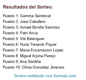 Lista de participantes: Victor M. Rueda Saenz, Josefa Pons Peiris, Gemma Sandoval, Tomas Fuentes, Rebeca Sanchez, Ana Maria Ramos Lopez, Jose Luis Perez Martinez, Eva Fortuño, Nuria Losada Barreros, Ramon Losada Losada, Juliana Barreros Santos, Belen Navalon Valls, Julian Moñoz, Felipe Hernandez Villaescusa, Pilar Pili, Isidro Roig, Pili Vicent, Francisco Borja Correas, Gema Alonso, Ana María De Pascual Y Medina, Francisco Miguel Garcia Calvo, Aníbal Liñán Martínez, Mcarmen Ruiz Duarte, María Del Carmen Corriols, Nuria Lobato Verdugo, Jorge Ml, Pedro Alonso Lopez, David Alcrudo, Rosa d'Ab Ril, Josep Matias, Petra Cabrero, Josep Martin, Victor Yah, Antonio Aguilar, Rosa Elias, Josep Angel, Merce Vega, Luisa Maria Chaparro Romero, Isagar Nando, Margarita Sañudo, Beatriz Esteban, Via La Creo, Paco Molina, Maria Saiz, Maria Crespo, Maria Del Carmen Losada Barreros, Marta Glez, Asun G Arias, Fely Msan, Domi Pascual, Vale Castaño M, Mirella Tumos, Juan Carlos, Maria Belen Lopez Velasco, Charly Marti, Vanesa Calvo Chao, Ander Ubillos, Laura Ezquerra, Carlos J. López Peña, Natalia Pérez Pérez, Andres Perez, Susana Perez, Juanjo Rubio Cintora, Rober Sanchez, Sara Rubio Olalla, Carmen Tejero, Julio Muñoz, Esther Quiñones Casanovas, Rut Munoz, Ester Muñoz, Yolanda Gines, Migue Ruiz, Julia Perez Blanco, Mary Ruiz, Estefania Figueroa, Luis Fernando Labrador, Tania Stinson, Silvia Gil Najera, Mónica Herrerías, Pepitaa Fernandez, Ana Varela, Nuria Tressols Piquer, Fernando Taroncher Bosch, Bernardina, Jennifer del Río Cámara, Ben Sanz, Maria José Romero Ubeda, Beatriz Escribano Vacas, Adilia Vallejo, Simón Vallejo Sañudo, Cesar Vallejo Herrero, Eva Rodriguez, Juan Fran Ruiz, Nuria Muñiz, Enrique Cantos, Francisco Javier Martinez Romero, Fran Lago, Ana Romero, Maria Cristina Duque Parra, Mariela Chavez, Maria Mar Pn, Carmen Herrero Calderon, Raul Leon Gonzalez, Beatriz Martinez Diaz-Caneja, Jonay Alvarez, Kimi Soler, Celia Beltrán, Veronica Aragon Benito, María José Manzanares Artés, Begoña Diaz, Ana Martín Pérez, Susi Marcos, Sarah Gonzalez Gonzalez, Daniel Burriel Esteban, Rubén Redondo Martínez, Guillermo Bassi, Marisol Alonso, Julio Climent Femenia, Alberto Garcia Moreno, Jose Ruiz Quesada, Antonio Gomez Perez, Maria Jose Roldan, Noelia Maria Garcia, Alfredo Heredia, Sandra Vic G, Patri Arcia, Francisca Garcia Madrileño, Ana Ballestero Ballestero, jose, Ismael Bonilla Sanchez, Prudencio Cámara Calvo, Filomena Gil Prieto, Luis Antonio Fuente Ballestero, Pedro Romero, Santiago Cabado Goas, María Teresa Barcala González, Vale Morado, Julia López López, Jose Alvarez, Carmen Navarro Ruiz, Aurora Castro Luaces, Lucía Cabado Lòpez, Carmen López Coto, Sandra Rubio, Santiago Pereda, Enrique Zafra, Carmen Estraviz Varela, Marta Ferrer Bria, Aurora Aida Goas Castro, Jan Soler, Segunda SanJuan Ferrer, E José Alvarez, Ayoze Brito, Ester Diez, Angel Cabado Estraviz, Jennifer Fernandez-Pacheco, Fernando Romero Herrera, Tatiana Cabado Lopez, Moises Goas Gonzalez, Luis Antonio Fernandez Romera, Victor Lopez Gomez, Borja Romero, Carmen Rodriguez de Antonio, Oliva Escobar, luicia, Isaac Perez Velazquez, María Pérez, Lucia Perez Perez, Mari Arias F, Santiago Cabado Estraviz, Al-Fer Ramo, Carolina Velázquez Cobo, Jose Caballero, Manuel Fp, Carmen Pueyo, Jj PuMa, Conxi Piquer, Javier Del Teso Martin, Nicolas del Teso, Henar Martín González, Guillermo Pérez Mora, Emijos A Gullón, Ramona Alvarez Fdez, Susana Gutiérrez Blanco, Sito Gufer, José Álvarez G, María A Ferrero, Agu Arias, GArias Enca, Milo Álvarez, Jordi Poy Tome, Sergio Lantarón, Juan Manuel García Dujo, Juanma Nieto, Andres Martinez, Marta Martinez de Salinas, Pepi Pavaroti, Cany Gullon, Gema Rivera, Alvarez Ramo, Encarnacion Gullon Arias, Jesus Manuel Fuentes Herrera, Isabel Prados Gallardo, Ana López, Carmen López Mateo, Santos Peña, Maria J Fernandez, Montserrat Lopez Linares, Cristina BP, Sonia Moresi Lopez, Olivia Gonzalez Jimenez, Yolanda Gutierrez Gomez, Luz Marian, Marta Moreno Caparrós, Nieves Alvarez Sanchez, Juan Luis Martinez Collado, Florentina Trigo Gonzalez, Aure Pirl A, Mari Cruz Ballester Trigo, Bea Gonzalez, Ana Sardiña, Carla Villo, Beatriz Carrascosa, Erika Lucas Montero, María José Mata, Alberto Monasterio, Lorenza Monasterio Vilumbrales, Fernando Taroncher Ballester, Cristina Rojo Latorre, Luis Gutierrez, María Aragón, Miriam Senovilla, David Cimarra Torre, Hidrocéfalo Gallumbeitor, Eva Romon, Chema Conde Ledesma, Teresa Delgado, Emilio Álvarez Rodríguez, Miren K Hernandez, Juanjo Rodriguez, Joaquin Fernández, Fernando Fernandez, Raul Santos, Rocio Santos, Jose Antonio Herrero, Beatriz Valdés Cerezo, Mari Carmen Perez, Kris Lorenzista, Ana Carballo, Concepcion Matias Simarro, Isabel Gragera, Maria Coronada Rosa, Maria Angeles Romero Gil, Simon Garcia Alberto, Estefanía PiCa, Alfredo Ferrer Mateu, Vanessa Guerrero Peregrina, Cristina Vidal Martinez, Núria Garcia Sala, Javier Sanchez Migallon Royo, Alvaro Hernanz Sanchez, Joaquin Roldan, Pilar Rodríguez, Mamem Fernández, Pablo C Fernandez, Natalia Jiménez López, Kini Rodriguez, Mirela Sink, Nano Btt, Rita Darocas Dinarès, Elena Del Pozo Fernandez, Carmen Garcia, Noelia Hontoria, Abel Chacon, Julia Romano Garcia, Maria Jose Romero Arevalo, Jesús Diego Rionegro, Miren Dapf, Judith Romano García, Jose Furi, Fernando Roldán Rodríguez, Judit Romero, Iratxe Sd, Arantxa Sanchez, Belen Gomez Sobrino, Gemma Dominguez Perez, Inmaculada Ortiz Montiel, Javier Del Pozo Rodriguez, Carolina Estévez, Miguel Angel Rubio Losa, Diana Peña, Kamal Bizi, Cipriano Moreno Aparicio, Javier de Trapaga, Elena Masa, Noeli Delgado, Enric Robles, Juli Losada Barreros, Montserrat Losada Barreros, Maria DelCarmen Rodríguez Gracia, Silvia Gil, Angela Estrada Rodriguez, Teresa Garcia Soto, Francisco Javier Espin Valero, Jose M. Reverte, Aitana Delgado, Chelo Moa, Javier Lara, Ana Larrea, Juan Alberto Gutiérrez Díaz, José Martín del Campo