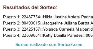 Resultados del sorteo: