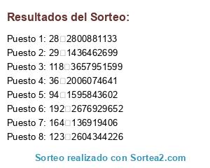 Resultados del sorteo: