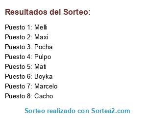 Lista de participantes: Maxi, Mati, Pocha, Pulpo, Boyka, Cacho, Melli, Marcelo.
