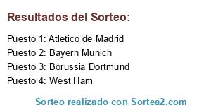 Lista de participantes: Borussia Dortmund, West Ham, Atletico de Madrid, Bayern Munich.