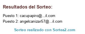 Este sorteo ha sido certificado por Sortea2. Sortea2 garantiza que: