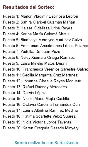 - Puesto 17: Lauris Albelina Ramírez Medina