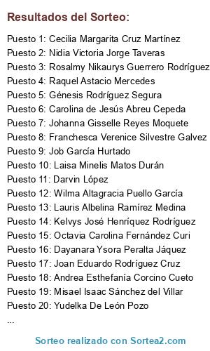 - Puesto 16: Dayanara Ysora Peralta Jáquez