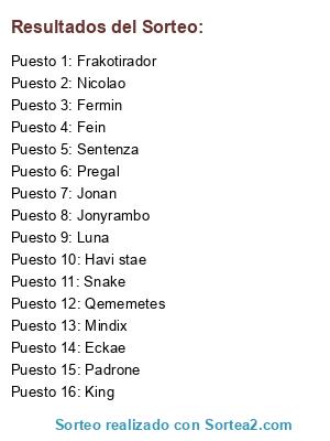 Lista de participantes: Weas, JorgeNeymar, Emilio Snake, Kantus, Beivi, Xcorpiom, Parrita, Danivalde.