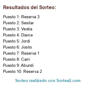 Lista de participantes: Sesitar, Abundi, Diarce, Carri, Jordi, Josito, Vestia, Reserva 1, Reserva 2, Reserva 3.