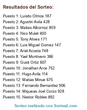 Resultados del sorteo: