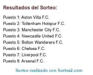 Lista de participantes: Chelsea F.C., Liverpool F.C., Aston Villa F.C., Manchester City F.C., Bolton Wanderers F.C., Tottenham Hotspur F.C., Arsenal F.C., Newcastle United F.C..