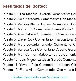 - Ganador 5: Ana Gallego Comentario: Quiero ir con Jeronimo Lianez porque no para de trabajar y se merece un poco de ocio y que mejor manera que yendo al cine a ver esa peli