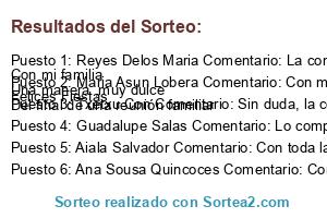 - Ganador 3: Txetxu Con Comentario: Sin duda, la compartiré (porque aunque no me toque, la compro seguro) con mi familia.