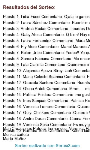 - Ganador 6: Ely More Comentario: Mariel Maradei Ale Peluffo Anto Maradei 😍 me encantaría ir!!!!