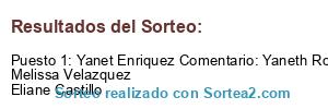 - Ganador: Yanet Enriquez Comentario: Yaneth Rodriguez Melissa Velazquez Eliane Castillo
