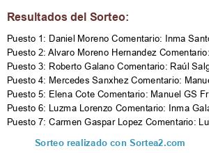 - Ganador 5: Elena Cote Comentario: Manuel GS Francisco Gaspar Sanchez Natalia Teston Hernandez