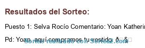 - Ganador: Selva Rocío Comentario: Yoan Katherine Ivone Veliz Camarena Mily YsCr apoyen a la página. Pd: Yoan, aquí compramos tu vestido. 🧐