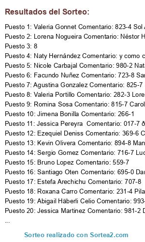 - Ganador 10: Jessica Pereyra Comentario: 017-7 🎉🎊 Daniela Apdala Maria Elena Contrera Natali Castro