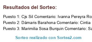 - Ganador 2: Dámaris Barahona Comentario: Cintia Monserrat Carolina Forigo Wanda Rocca