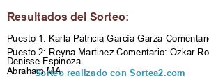 - Ganador: Karla Patricia García Garza Comentario: Damarys Paaolaa Heelen Eli Bonnie Pérez