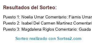 - Ganador 1: Noelia Umar Comentario: Fiamis Umar Norma Oviedo Soledad Oviedo