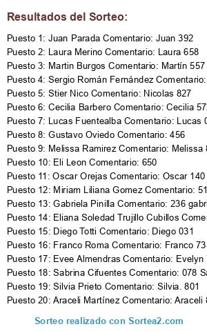 - Ganador 5: Stier Nico Comentario: Nicolas 827