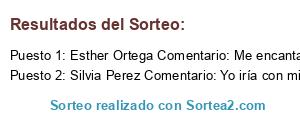 - Ganador: Esther Ortega Comentario: Me encantaría tener suerte participó y comparto con mi hija Lorena Carbajo