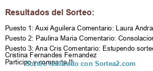- Suplente 2: Ana Cris Comentario: Estupendo sorteo!! Cristina Fernandes Fernandez Participo y comparto !!