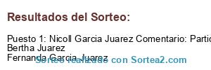 - Ganador: Nicoll Garcia Juarez Comentario: Participen Bertha Juarez Fernanda Garcia Juarez