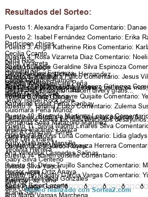 - Ganador 11: Silvia Naomi Linares Silva Comentario: Participen Chicas! Yudi A Chinchay Torres Vero Leli Linares Lis Veronica Macedo Reyna Ana Veronica Cespedes Salinas Gaby Silva Centeno Julissa Silva Yance Carmen QR Zulema Paz Luna Ojala Pueda Ganar! 💖😘🍀💗💖😘🍀💖💪😘💗💗💖💖💗😘🍀💪