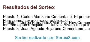 - Ganador: Carlos Manzano Comentario: El primer interesado soy yoooo que iría conmigo mismo. Pero como hay que hacer publicidad.... mmmm algún amiguito.... Tal vez Alvaro tenga interés