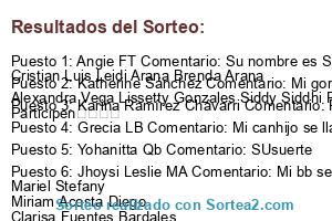 - Suplente 1: Katherine Sánchez Comentario: Mi gordo se llama Samuro Alexandra Vega Lissetty Gonzales Siddy Siddhi Rios Participen❤️❤️