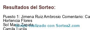 - Ganador: Jimena Ruiz Ambrosio Comentario: Carla Merchán Hortencia Flores Sol Maria Zapata Camila Lucila Alexia Maciel Súper recomendada 💖👌