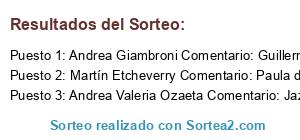 - Ganador 1: Andrea Giambroni Comentario: Guillermina Inés Toomey Ines Bigatti Agustina Lopez Osornio