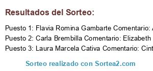 - Ganador 3: Laura Marcela Cativa Comentario: Cinthia Zerrizuela Carina Del Valle Carabajal Constanza Cativa