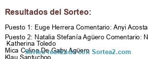- Ganador 2: Natalia Stefanía Agüero Comentario: Naghu Enzo Yapura Katherina Toledo Mica Colina De Gaby Agüero Klau Santuchoo Elena Alba Vega Mara Quinteros ❤
