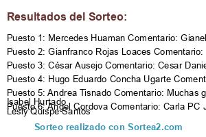 - Ganador 1: Mercedes Huaman Comentario: Gianella Inciso Pozzoli Gianella Canturin Rios Mafer Huamani Noriega <3