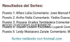 - Ganador 3: Roxana Grados Tembladera Comentario: luis miguel custodio gutierreZ ROCIO CUSTODIO GUTIERREZP