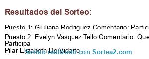 - Ganador: Giuliana Rodriguez Comentario: Participa amiga Jacqueline Ormeño Campos