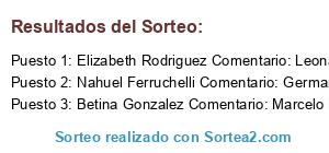 - Ganador 3: Betina Gonzalez Comentario: Marcelo Malugani Gabriel Matteaccio