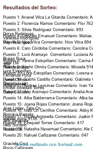 - Ganador 20: Nahuel Cañizares Comentario: 047 Graciela Cruz Rocio Cañizares Anye Cañizares Magdalena Cruz