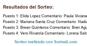 - Ganador 1: Elida Lopez Comentario: Paula Viviana MaMartins, Sandra Di Franco, Sandra Coria