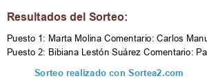 - Ganador: Patricia Vicent Comentario: Me encanta el sorteo Maite Gomez Garces Mar Villena Fajardo