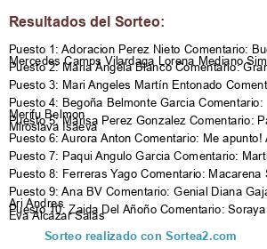 - Ganador 1: Adoracion Perez Nieto Comentario: Buen regalo!!! Mercedes Camps Vilardaga Lorena Mediano Simon Juana Maria Gallego Gelde